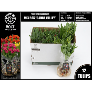 "DANCE VALLEY" Mix Box - 12 Tulips with bulbs - XL bouquet - 4 Single Flowered Variations in Season